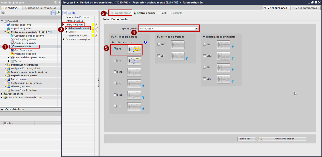 Puesta en marcha de STO con PROFIsafe en Startdrive (paso a paso)