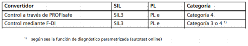 La gama SINAMICS S210 también nos permite utilizar Safety Integrated a través de PROFIsafe. Tal y como se indica en la Tabla 1, es posible alcanzar hasta la categoría 4 según ISO 13849-1.
