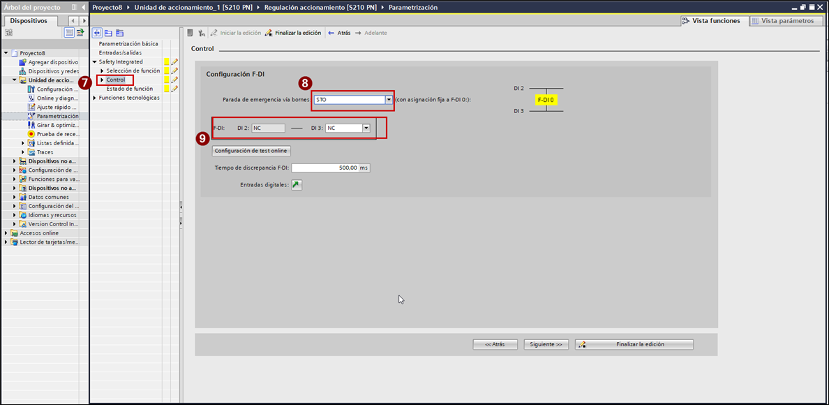 1.1. Cómo parametrizar STO con entradas F-DI y autotest vía VS+ en Startdrive